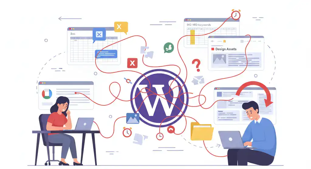 By the time it’s all pieced together in WordPress, the process looks more like a scavenger hunt than a workflow.